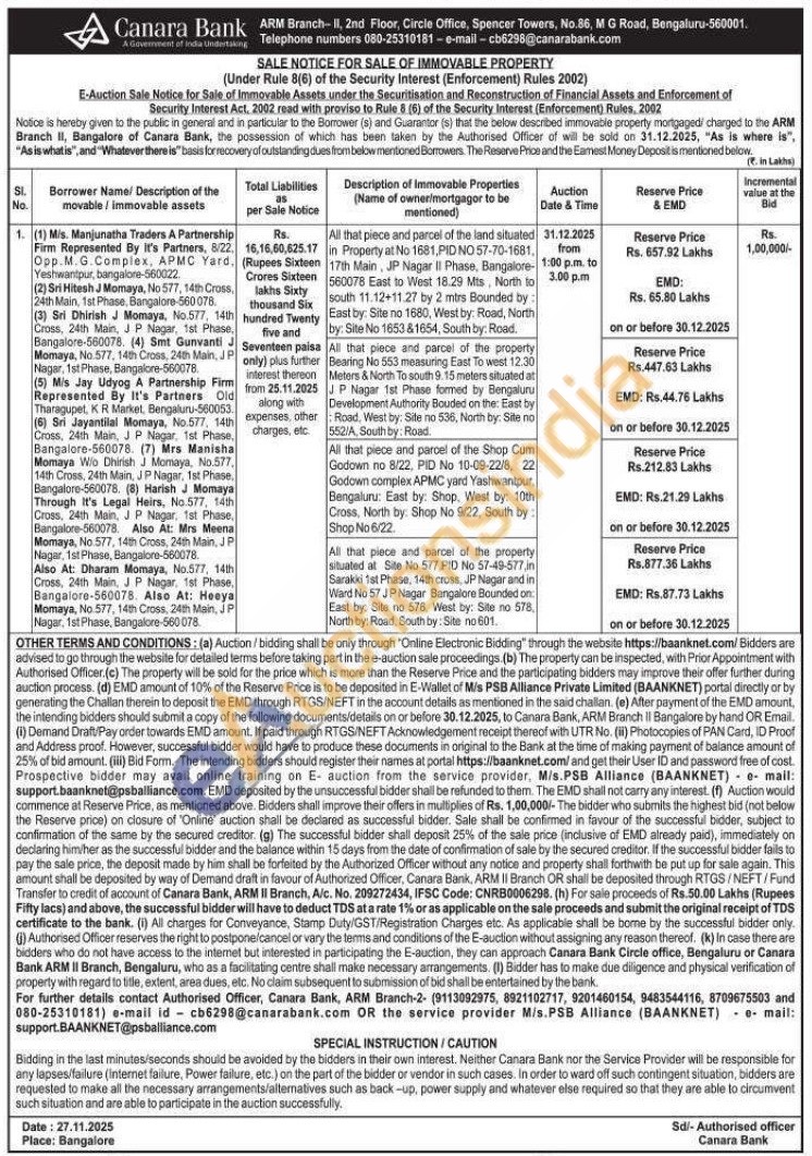 Authorised Officer ARM Branch-2- 9113092975 / 8921102717 / 9201460154 / 9483544116 / 8709675503 / 080-25310181