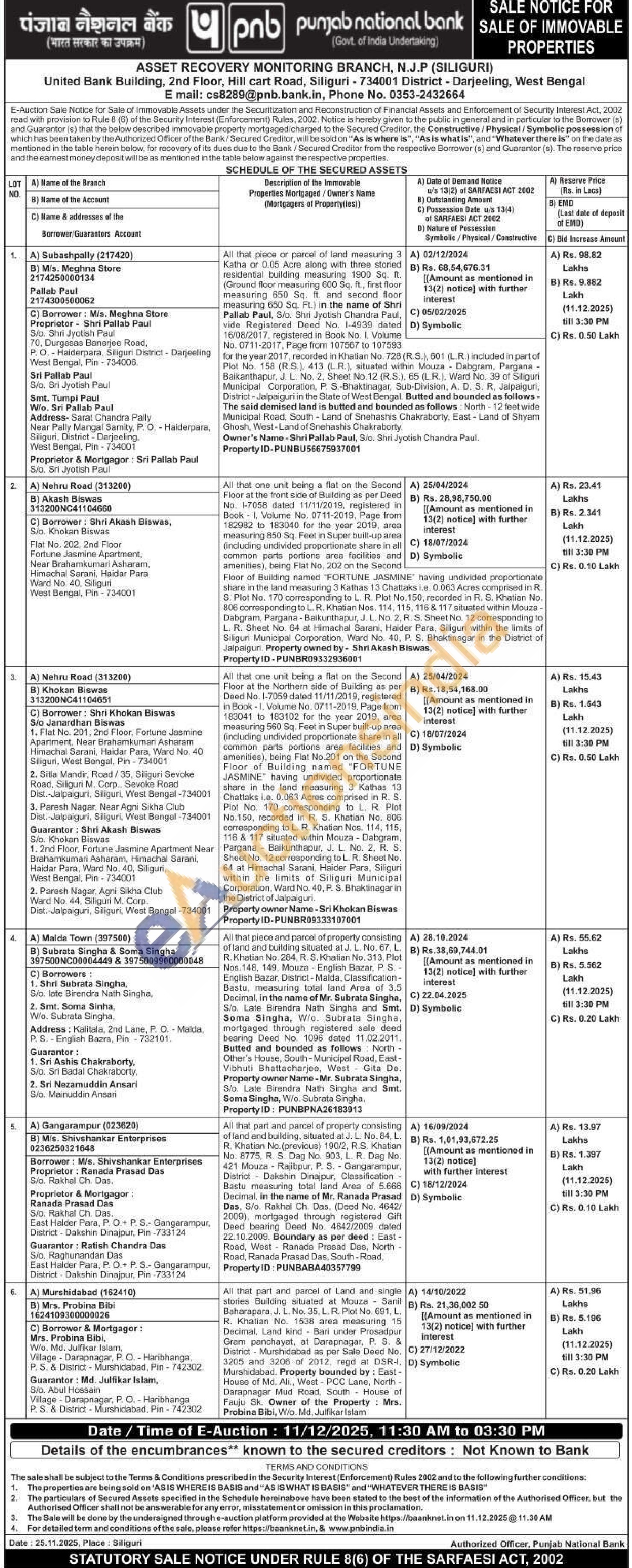 All that part and parcel of property consisting of land and building, situated at J. L. No. 84, L. R. Khatian No.(previous) 190/2, R.S. Khatian No. 8775, R. S. Dag No. 903, L. R. Dag No. 421 Mouza Rajibpur, P. S. Gangarampur, District Dakshin Dinajpur, Classification Bastu measuring total land Area of 5.666 Decimal, in the name of Mr. Ranada Prasad Das, S/o. Rakhal Ch. Das. (Deed No. 4642/2009), mortgaged through registered Gift Deed bearing Deed No. 4642/2009 dated 22.10.2009. Boundary as per deed: East -Road, West Ranada Prasad Das, North -Road, Ranada Prasad Das, South-Road, Property ID: PUNBABA40357799