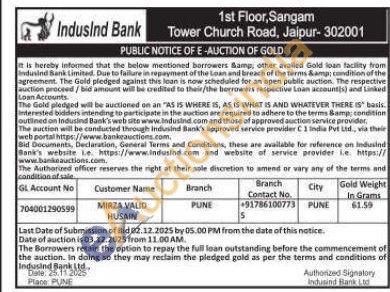 IndusInd Bank Gold Auctions Auction in Bengaluru