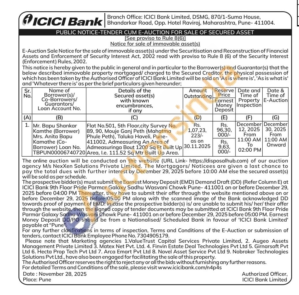 Flat No.501, 5th Floor, city Survey No. 89, 90, Mouje Ganj Peth (Mahatma Phule Peth), Taluka Haveli, Pune-411002, Admeasuring An Area of Admeasuringa Bout 1200 Sq Ft Built Up Area, l.e. 111.52 Sq Mtr Built Up Area.