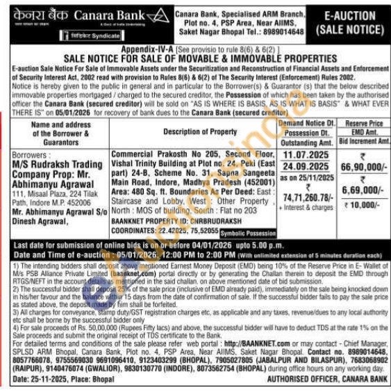 Commercial Prakosth No 205, Second Floor, Vishal Trinity Building at Plot no. 24, Peki (East part) 24-B, Scheme No. 31, Sapna Sangeeta Main Road, Indore, Madhya Pradesh (452001) Area: 480 Sq. ft