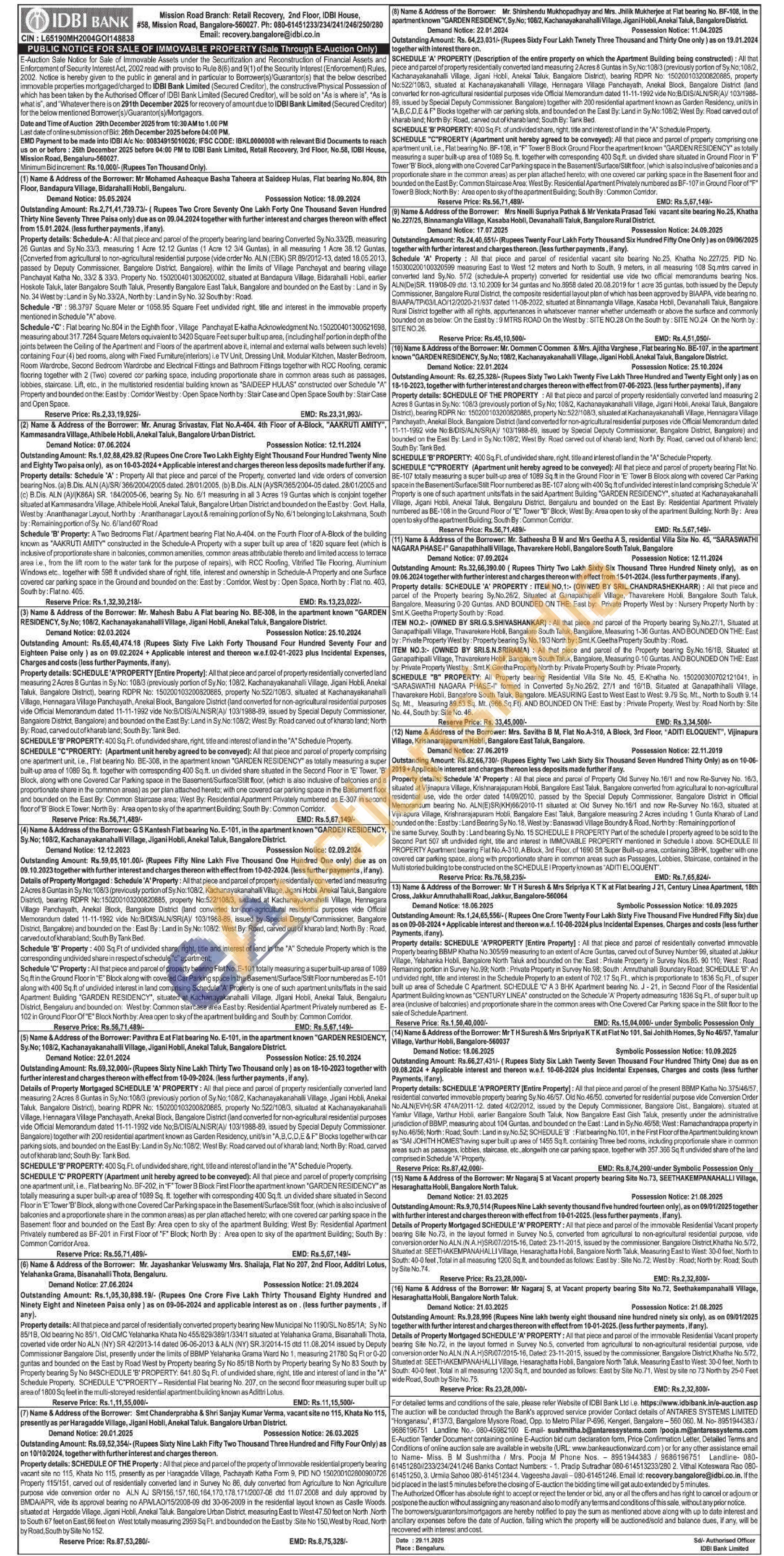 8) All that piece and parcel of property residentially converted land measuring 2 Acres & Guntas in Sy, No: 108/3 (previously portion of Sy. No: 108/2, Kachanayakanahalli Village, Jigani Hobli, Anekal Taluk, Bangalore District), bearing RDPR No: 150200103200820885, property No:522/108/3, situated at Kachanayakanahalli Village, Hennagara Village Panchayath, Anekal Block, Bangalore District (land converted for non-agricultural residential purposes vide Official Memorandum dated 11-11-1992 vide No:B/DIS/ALN/SR(A)/103/1988-89, issued by Special Deputy Commissioner. Bangalore) together with 200 residential apartment known as Garden Residency, unit's in "A.B,C,D,E & F Blocks together with car parking slots, and bounded on the East By: Land in Sy.No: 108/2: West By: Road carved out of kharab land; North By: Road, carved out of kharab land; South By: Tank Bed. SCHEDULE 'B' PROPERTY: 400 Sq. Ft. of undivided share, right, title and interest of land in the "A" Schedule Property. SCHEDULE "C"PROERTY (Apartment unit hereby agreed to be conveyed): All that piece and parcel of property comprising one apartment unit, ie, Flat bearing No. BF-106, in "F" Tower B Block Ground Floor the apartment known "GARDEN RESIDENCY" as totally measuring a super built-up area of 1089 Sq. ft. together with corresponding 400 Sq.ft. un divided share situated in Ground Floor in 'F' Tower'B' Block, along with one Covered Car Parking space in the Basement/Surface/Stilt floor, (which is also inclusive of balconies and a proportionate share in the common areas) as per plan attached hereto, with one covered car parking space in the Basement floor and bounded on the East By: Common Staircase Area, West By: Residential Apartment Privately numbered as BF-107 in Ground Floor of "F" Tower 8 Block: North By: Area open to sky of the apartment Buliding, South By: Common Corridor.