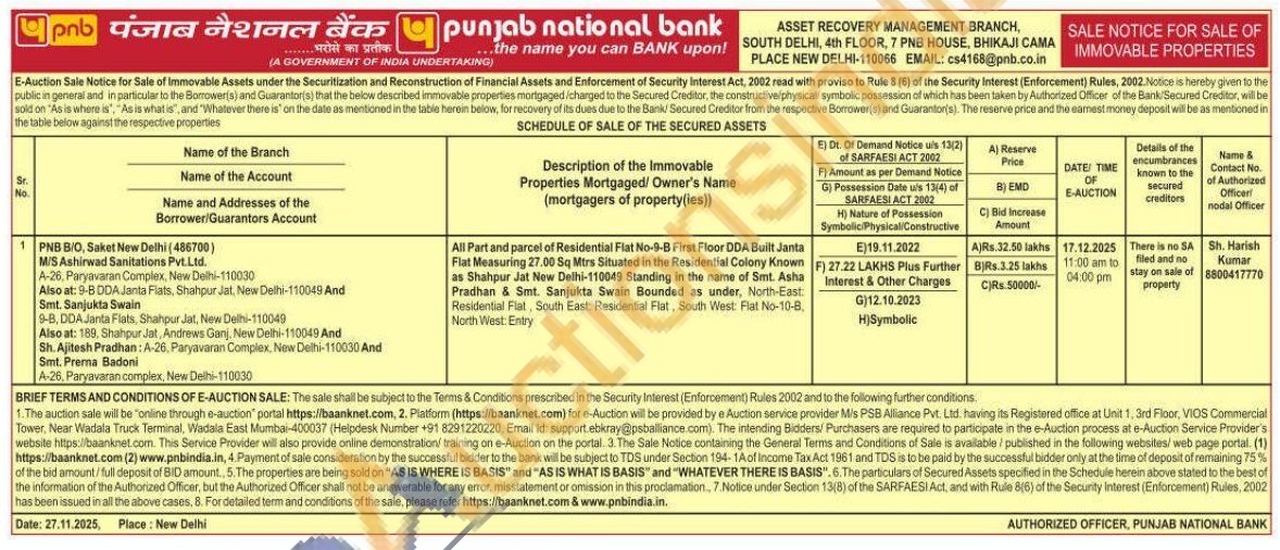 All Part and parcel of Residential Flat No-9-B First Floor DDA Built Janta Flat Measuring 27.00 Sq Mtrs Situated in the Residential Colony Known as Shahpur Jat New Delhi-110049 Standing in the name of Smt. Asha Pradhan & Smt. Sanjukta Swain Bounded as under, North-East Residential Flat, South East Residential Flat, South West: Flat No-10-8 North West: Entry