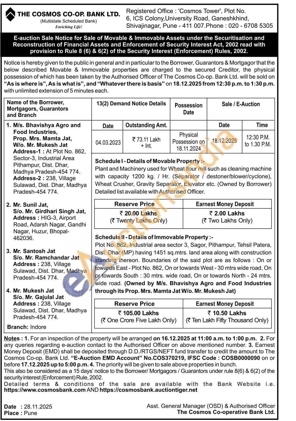 Schedule I-Details of Movable Property :- Plant and Machinery used for Wheat flour mill such as cleaning machine with capacity 1200 kg. / Hr. (Separator / destoner/blower/cyclone), Wheat Crusher, Gravity Separator, Elevator etc.