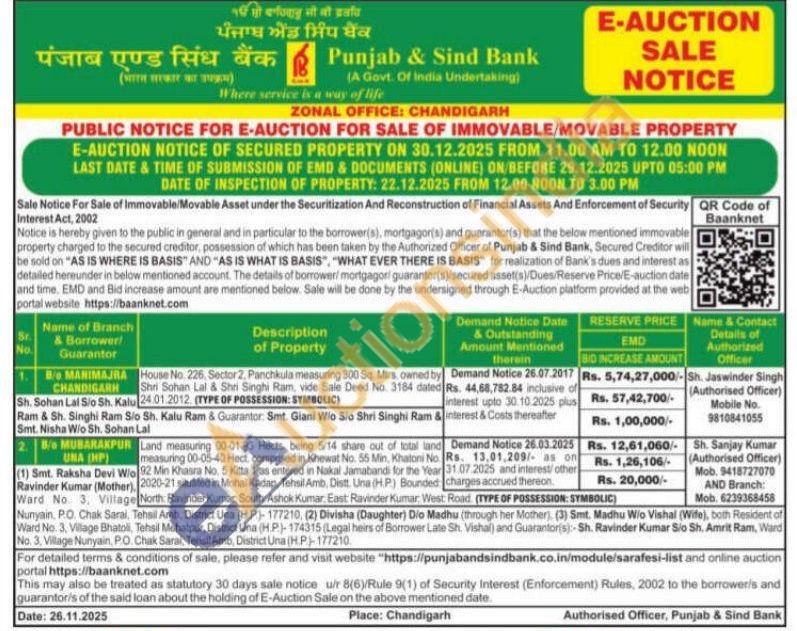 Land measuring 00-01-93 Hects being 5/14 share out of total land and online auction measuring 00-05-40 Hect comprised in Khewat No. 55 Min, Khatoni No. Ravinder Kumar (Mother), 2020-21 situated in Mohal Kadap, Tehsil Amb. Distt. Una (HP)