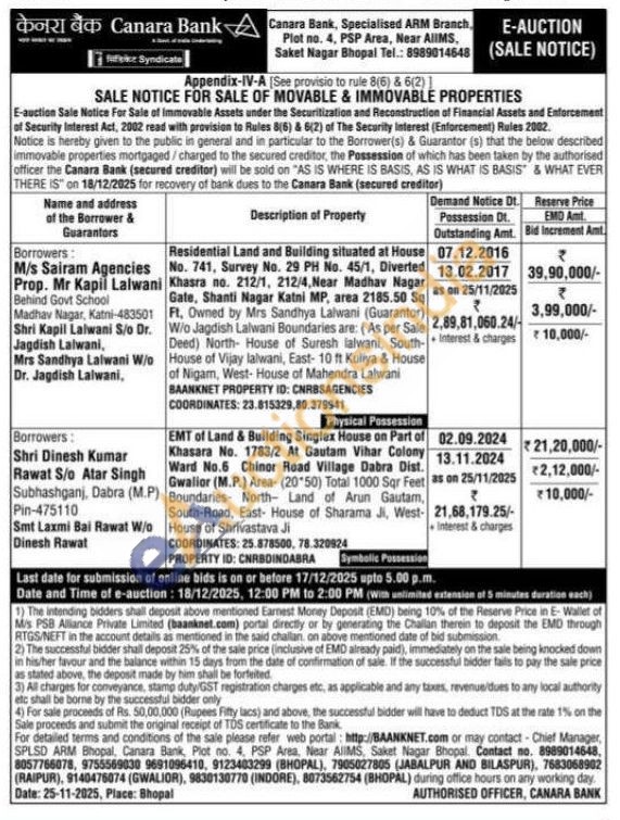 EMT of Land & Building Singlex House on Part of Khasara No. 1783/2 At Gautam Vihar Colony Ward No.6 Chinor Road Village Dabra Dist. Gwalior (M.P
