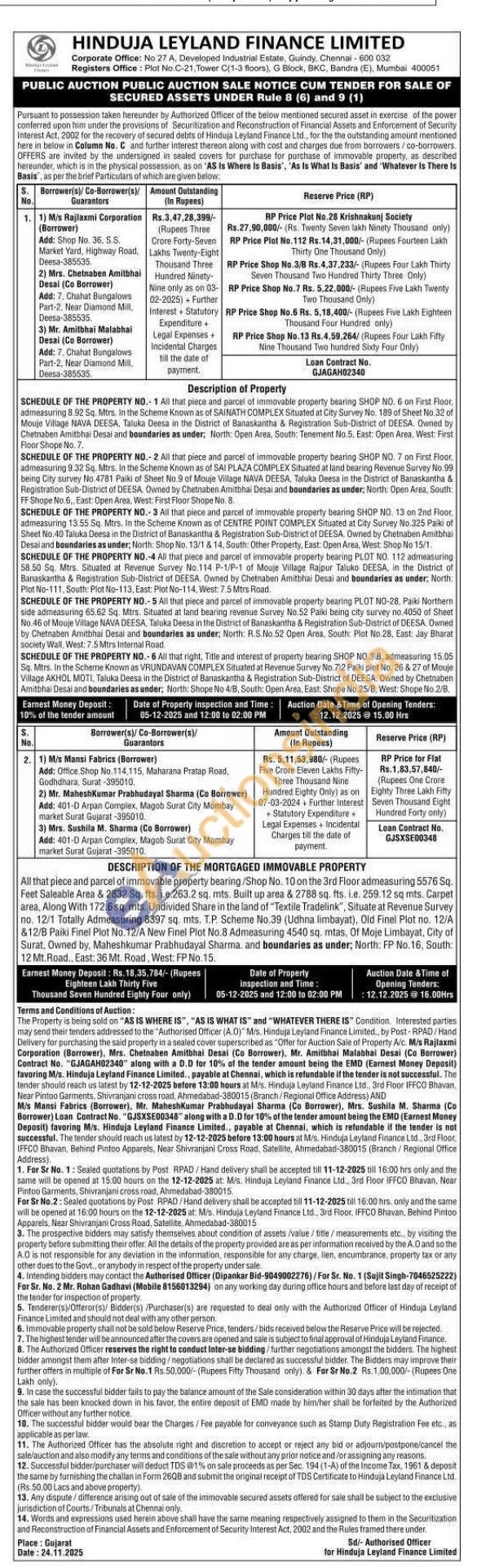 All that piece and parcel of immovable property bearing/Shop No. 10 on the 3rd Floor admeasuring 5576 Sq. Feet Saleable Area & 2832 Sq. fts. i.e.263.2 sq. mts. Built up area & 2788 sq. fts. i.e. 259.12 sq mts. Carpet area, Along With 172.6 sq. mts. Undivided Share in the land of "Textile Tradelink", Situate at Revenue Survey no. 12/1 Totally Admeasuring 8397 sq. mts, T.P. Scheme No.39 (Udhna limbayat), Old Finel Plot no. 12/A &12/B Paiki Finel Plot No. 12/A New Finel Plot No.8 Admeasuring 4540 sq. mtas, Of Moje Limbayat, City of Surat, Owned by, Maheshkumar Prabhudayal Sharma. and boundaries as under, North: FP No.16, South: 12 Mt.Road., East: 36 Mt. Road, West: FP No. 15.