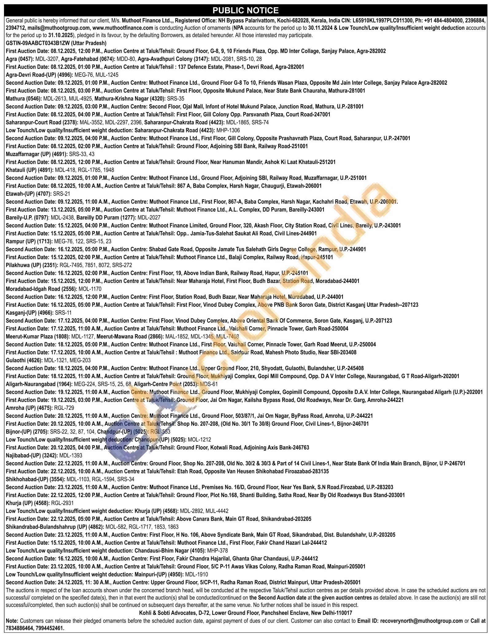 Muthoot Finance Ltd Gold Auctions Auction in Agra