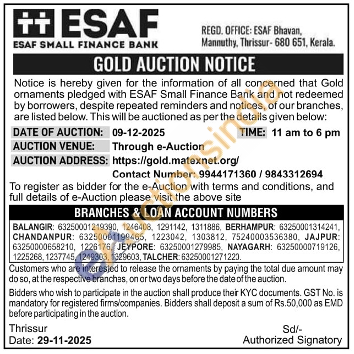 ESAF SMALL FINANCE BANK Gold Auctions Auction in Jajpur