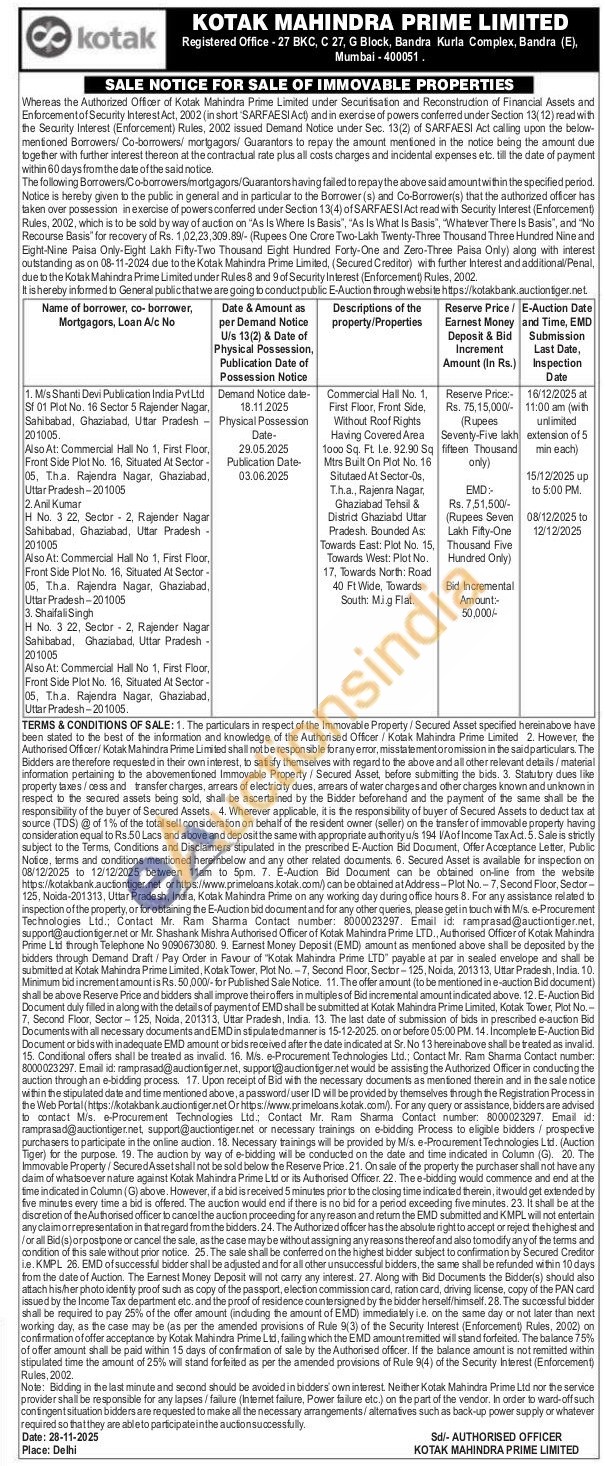 Commercial Hall No. 1, First Floor, Front Side, Without Roof Rights Having Covered Area 1000 Sq. Ft l.e. 92.90 Sq Mtrs Built On Plot No. 16 Situtaed At Sector-Os, T.h.a., Rajenra Nagar, Ghaziabad Tehsil & District Ghaziabd Uttar Pradesh. Bounded As: