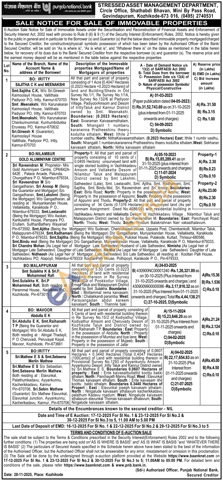 All that part and parcel of property consisting of 0.0607 Hectares + 0.3440 Hectares [Total 0.4047 Hectares (100Cents)) of Land with residential building thereon in Provisional Survey No. 1293 of Ayyankunnu Amsom Ayyankunnu Desom, Iritty Taluk and Kannur District owned by Sri. Mathew E S. Boundaries 0.0607 Hectares of property: East Ente kaivasathullathil koottu bakki sthalam; North: Panchayath Mannu Road; West: Elavunkal Thomas kaivasam sthalam; South: Ente kaivasam ithil koottu bakki sthalam. Boundaries 0.3440 Hectares of Propert: East: Elavunkal joseph kaivasam sthalam; North: Ningalude kaivasam sthalavum kacherikkadavu palathum Kadavu roadum; West: Ningalude kaivasam sthalavum elavunkal Thomas kaivasam sthalavum; South: Ningalude kaivasam sthalam