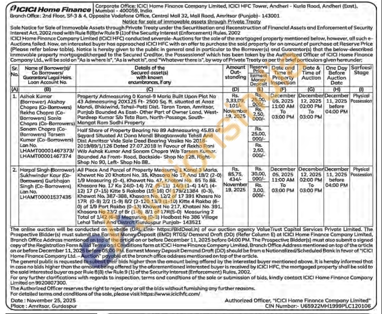2) All Piece And Parcel of Property Measung 1 Kanal 3 Marla, Khewat No 20 Khatoni No. 35, Khasara No 17 And 18/2 (2-0) 1/9 Measuring (0-4), Khawat No. 47, Khatoni No. 85 To 88. Khasara No. 17 Κα 24(0-14) 7/2 (5-11) 14/3 (1-4) 14/1 (4-12) 17 (7-15) Kitte 5 Rakaba (19-16) Of 179/21384 (0-3), Khawat No. 387-388, Khasara No. 12/2 of 17 391 Khasra No 17R (0-9) 2/2 (1-9) 8/2 (2-120 13/3 (1-10) Kitte 4 Rakba (6-0) of 1/9 Part Rakba (0-13) Khawat No 217, Khatoni No. 391, Khosara No 23/2 of Br (1-8) 8/1 of 17R(5-0) Measuring 2 Total of 1/42 (6-8) Measuring (0-3) Hodbast No 386 Village Lehal Tehsil And Distrcit Gurdaspur Punjab- 143521