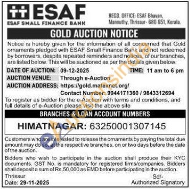 ESAF SMALL FINANCE BANK Gold Auctions Auction in Sabarkantha