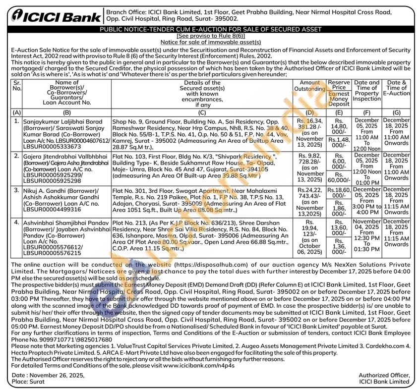 Plot No. 213, (As Per K.J.P Block No. 636/213), Shree Darshan Residency, Near Shree Sai Villa Residency, R.S. No. 84, Block No. 636, Ishanpore, Masma, Olpad, Surat- 395006 (Admeasuring An Area Of Plot Area 80.00 Sq.vaar., Open Land Area 66.88 Sq.mtr., C.O.P. Area 11.15 Sq.mtr..)