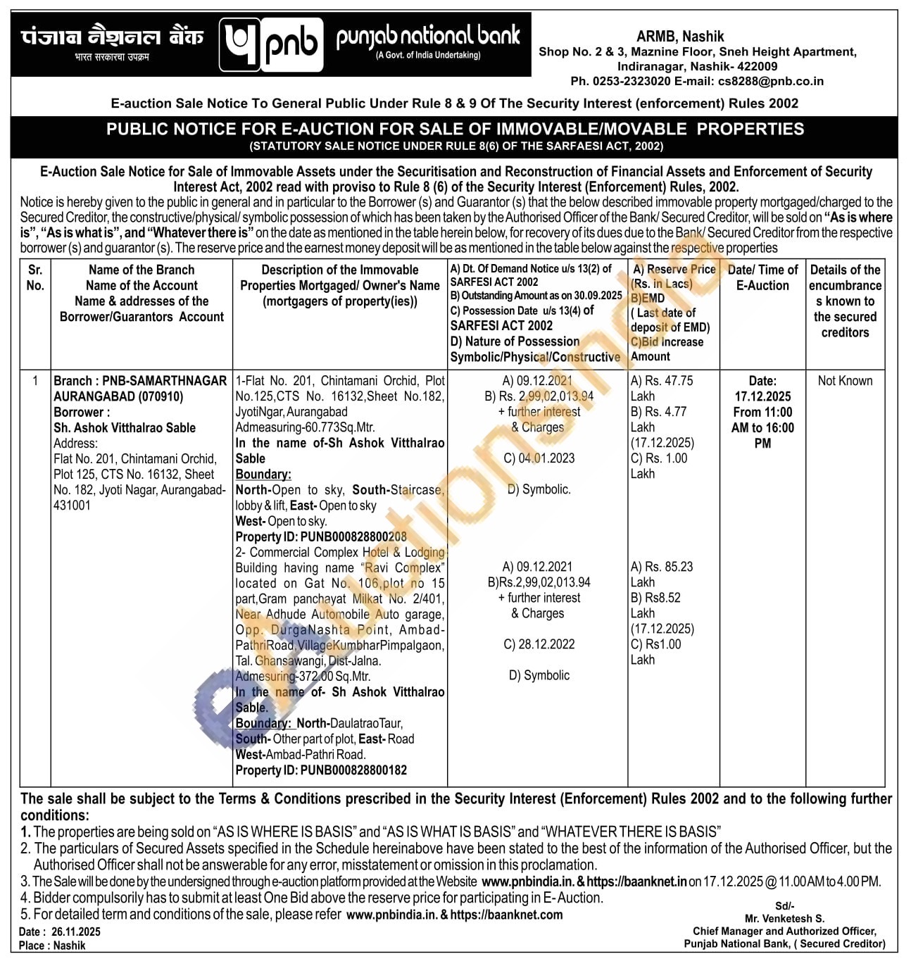2- Commercial Complex Hotel & Lodging Building having name "Ravi Complex" located on Gat No. 106, plot no 15 part, Gram panchayat Milkat No. 2/401, Near Adhude Automobile Auto garage, Opp. DurgaNashta Point, Ambad-Pathri Road, VillageKumbhar Pimpalgaon, Tal. Ghansawangi, Dist-Jalna. Admesuring-372.00 Sq.Mtr.