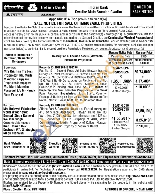 Mr Lalit Wadhwa, Authorised Officer, 9664796939, Mr. Dhyanendra Sikarwar, 9826916144
