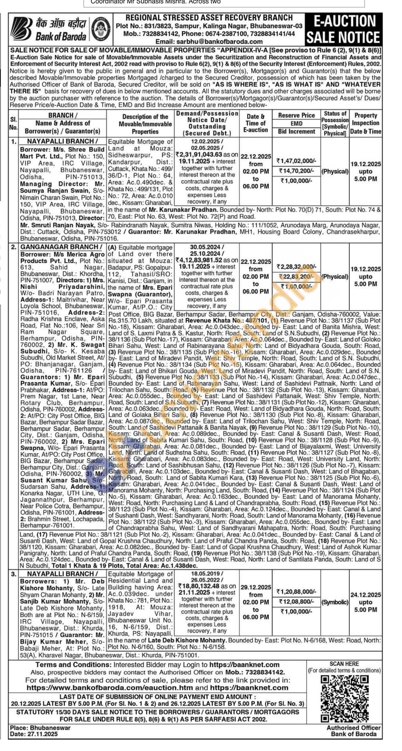 (A) Equitable Mortgage of Land over there situated at Mouza: Badapur, PS: Gopalpur 112, Tahasil/SRO Kanis, Dist Ganjam, in the name of Mrs. Epari Swapna (Guarantor), w/o Eparip Prasanta Kumar, At/P.O.: City post office ,Big Bazar ,Berhampur Sadar,Berhampur city,Dist Ganjam,Odisha