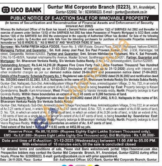 Guntur-Dist, Nallapadu Sub-Dist. Ankireddypalem Village Panchayath Area, ankireddypalem Village, D. No. 722, in an extent of Ac.3.21 cents of land, in which an extent of Ac.0.45 cents of land is being bounded by: East: Property belongs to Kesan Govindamma, South: Kurri Amareswari, West: Property belongs to Vajralla Venkata reddy, North: Property belongs to Kurri Govinda Reddy. Within these boundaries an extent of Ac.0.45 cents or 0.200 hectares of land