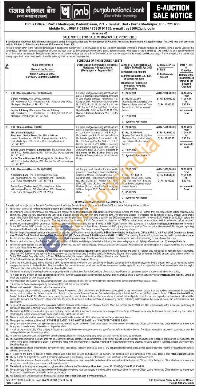Kolaghat, Dist-Purba Medinipur being Plot Equitable Mortgage covering all that part and parcel of the immovable properties consisting of Land situated at Mouza-Amalhanda, PS-No. 2300(LR), Kh. No. 1414 (LR). J.L. No. 291 of Area 3.25 Decimal Bastu Land via. Sale Deed No. 2450 for the Dt. 11.11.2005. Owner: Chhabi Adhikary, W/o. Joydev Adhikary.