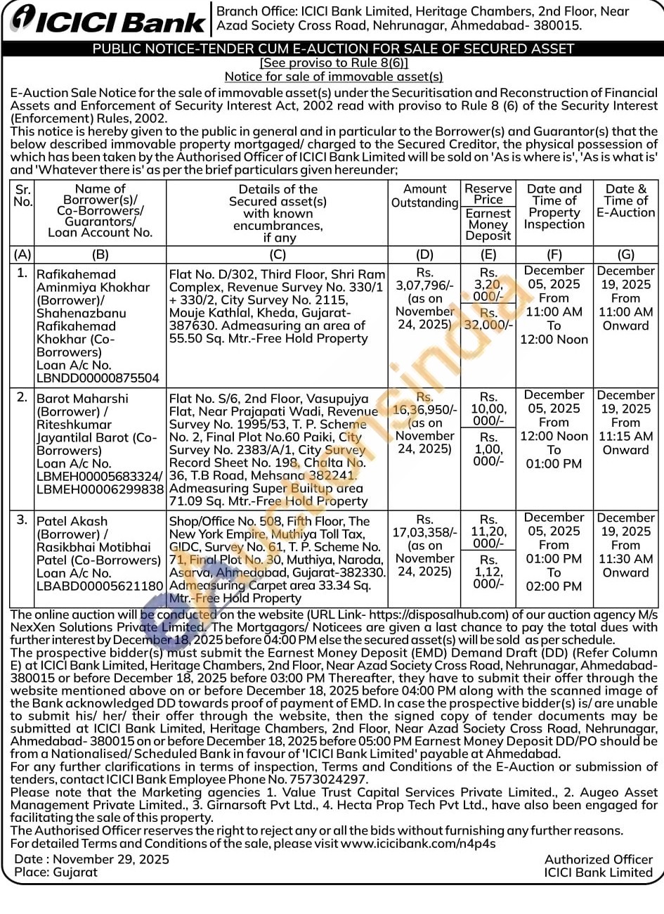 Flat No. S/6, 2nd Floor, Vasupujya Flat, Near Prajapati Wadi, Revenue Survey No. 1995/53, T. P. Scheme No. 2, Final Plot No.60 Paiki, City Admeasuring Super Builtup area Survey No. 2383/A/1, City Survey Record Sheet No. 198, Chalta No. , T.B Road, Mehsana 382241. 71.09 Sq. Mtr.-Free Hold Property