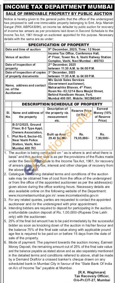 B-3/12/02/3, Ground Floor, B-3 Type Appt, Owners Association, Plot No-8, Sector-03, Near Vashi Police Station, Vashi, Navi Mumbai 400 703