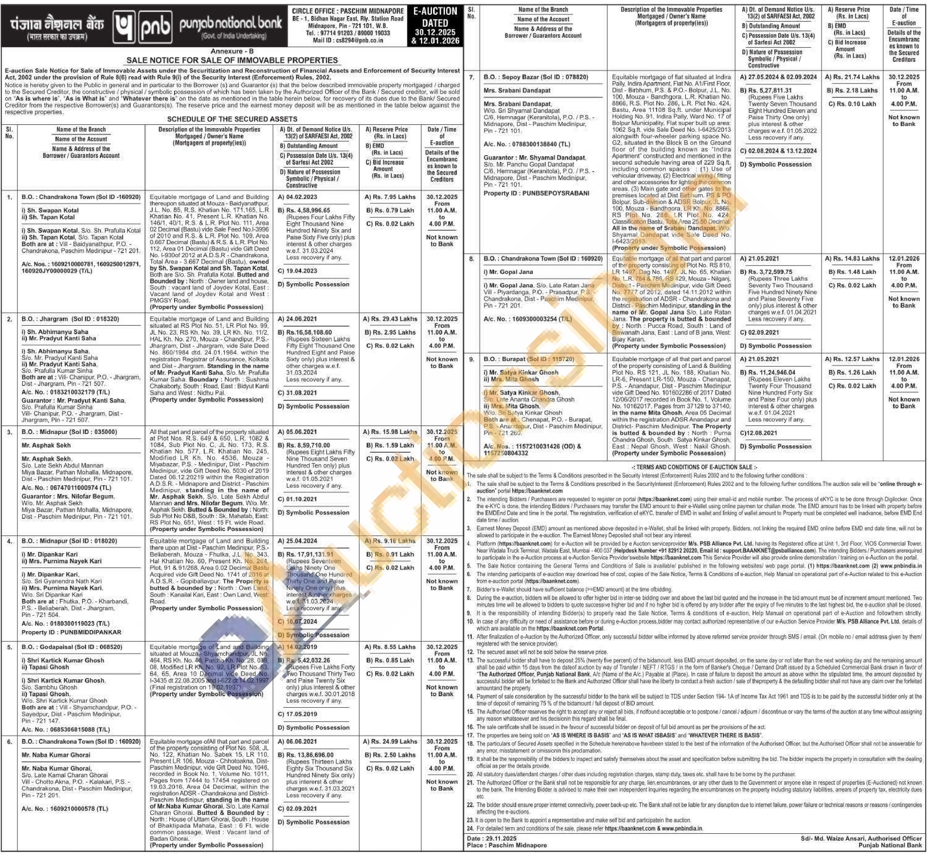 Equitable mortgage of Land and Building thereupon situated at Mouza-Baidyanathpur JL. No. 85, R.S. Khatian No. 171,165, L.R Khatian No. 41. Present L.R. Khatian No 146/1, 40/1, RS. & LR. Plot No. 111. Area 02 Decimal (Bastu) vide Sale Feed No.1-3996 of 2010 and R.S. & L.R. Plot No. 109. Area 0.667 Decimal (Bastu) & R.S. & LR Plot No. 112. Area 01 Decimal (Bastu) vide Gift Deed No. 1-930of 2012 at ADSR-Chandrakona, Total Area-3.667 Decimal (Bastu), owned by Sh. Swapan Kotal and Sh. Tapan Kotal Both are Sio. Sh. Prafulla Kotal. Butted and Bounded by: North: Owner land and house, South vacant land of Joydev Kotal, East Vacant land of Joydev Kotal and West: