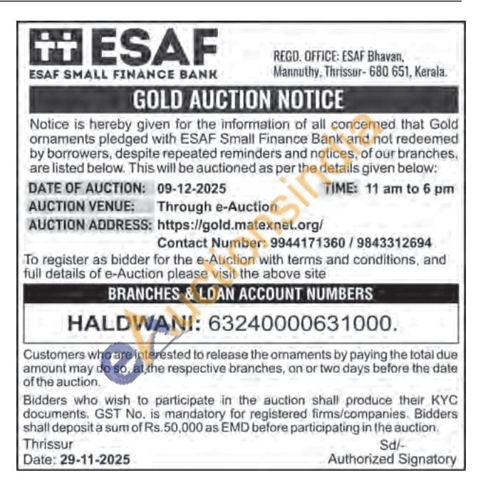 ESAF SMALL FINANCE BANK Gold Auctions Auction in Thrissur