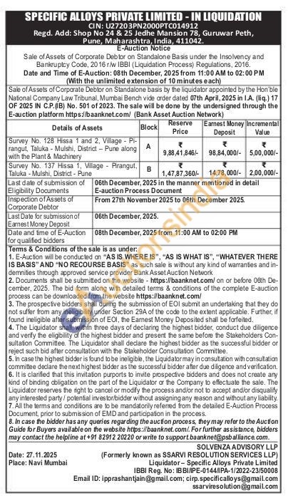 Survey No. 128 Hissa 1 and 2, Village - Pi-rangut, Taluka - Mulshi, District - Pune along with the Plant & Machinery
