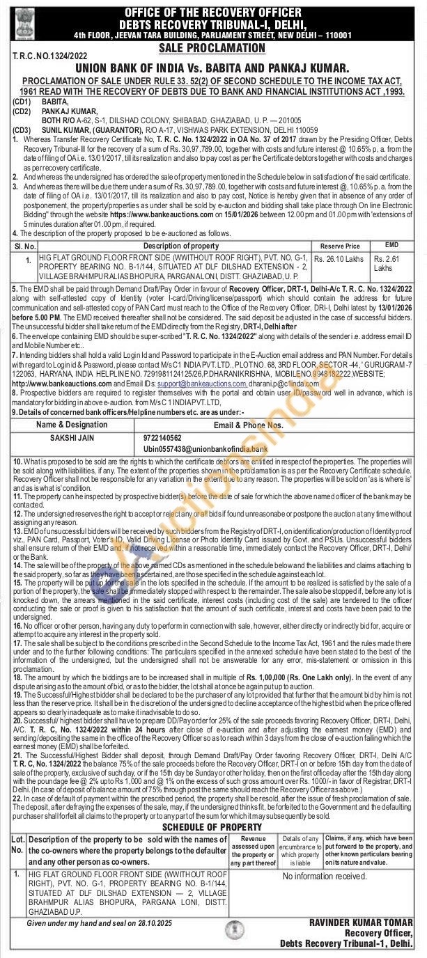HIG FLAT GROUND FLOOR FRONT SIDE (WWITHOUT ROOF RIGHT), PVT. NO, G-1, PROPERTY BEARING NO. B-1/144, SITUATED AT DLF DILSHAD EXTENSION - 2, VILLAGE BRAHMPURALIAS BHOPURA, PARGANALONI, DISTT. GHAZIABAD, U. P