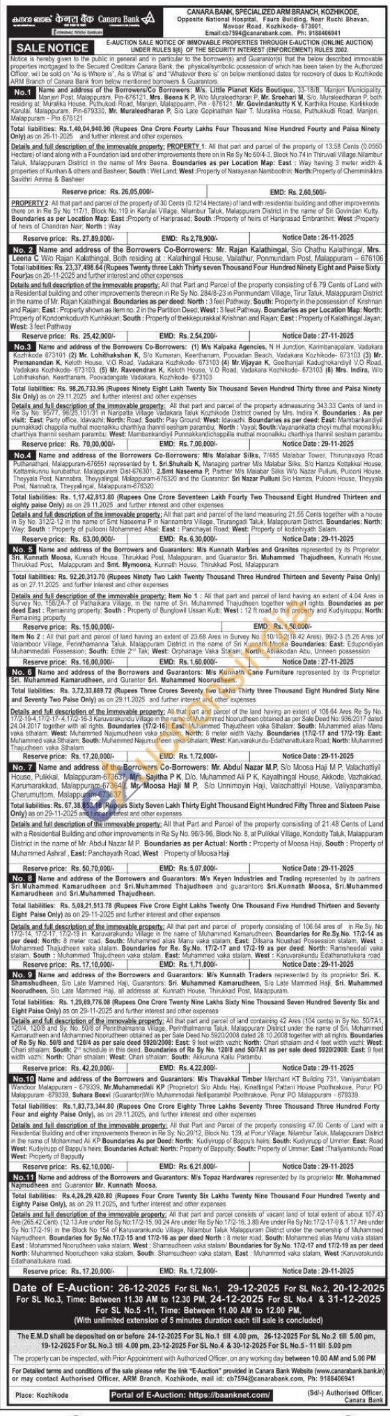 1) PROPERTY 2: All that part and parcel of the property of 30 Cents (0.1214 Hectare) of land with residential building and other improvemnts there on in Re Sy No 117/1, Block No. 119 in Karulai Village, Nilambur Taluk, Malappuram District in the name of Sri Govindan Kutty Boundaries as per Location Map: East: Property of Hariprasad, South Property of heirs of Hariprasad Embranthin: West:Property of heirs of Chandran Nair, North: Way