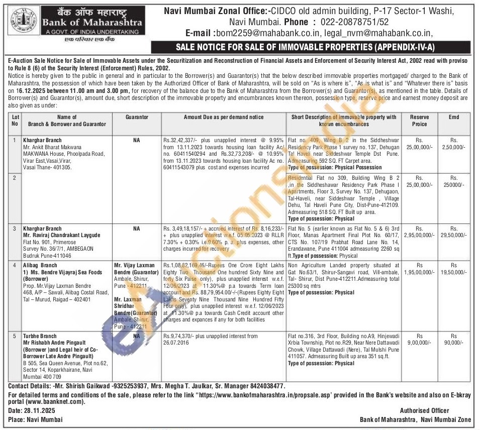 Contact : Mr. Shirish Gaikwad -9325253937 / Mrs. Megha T. Jaulkar, Sr. Manager- 8424038477
