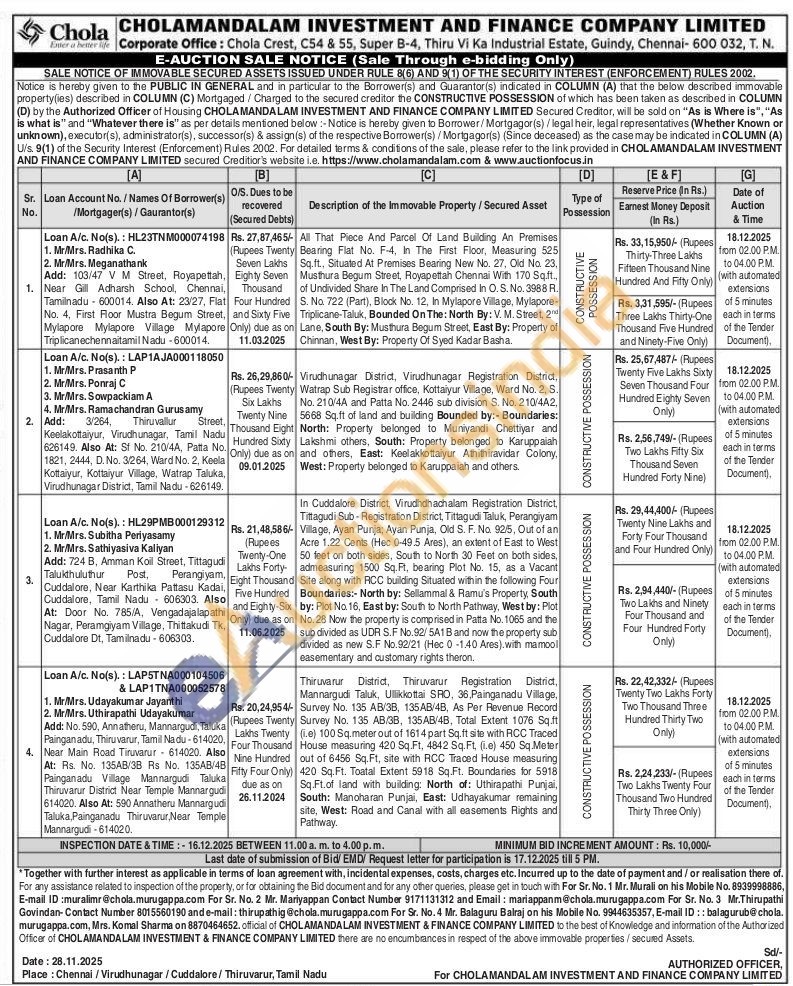 Contact Mr. Mariyappan Contact Number 9171131312 and Email: mariappanm@chola.murugappa.com