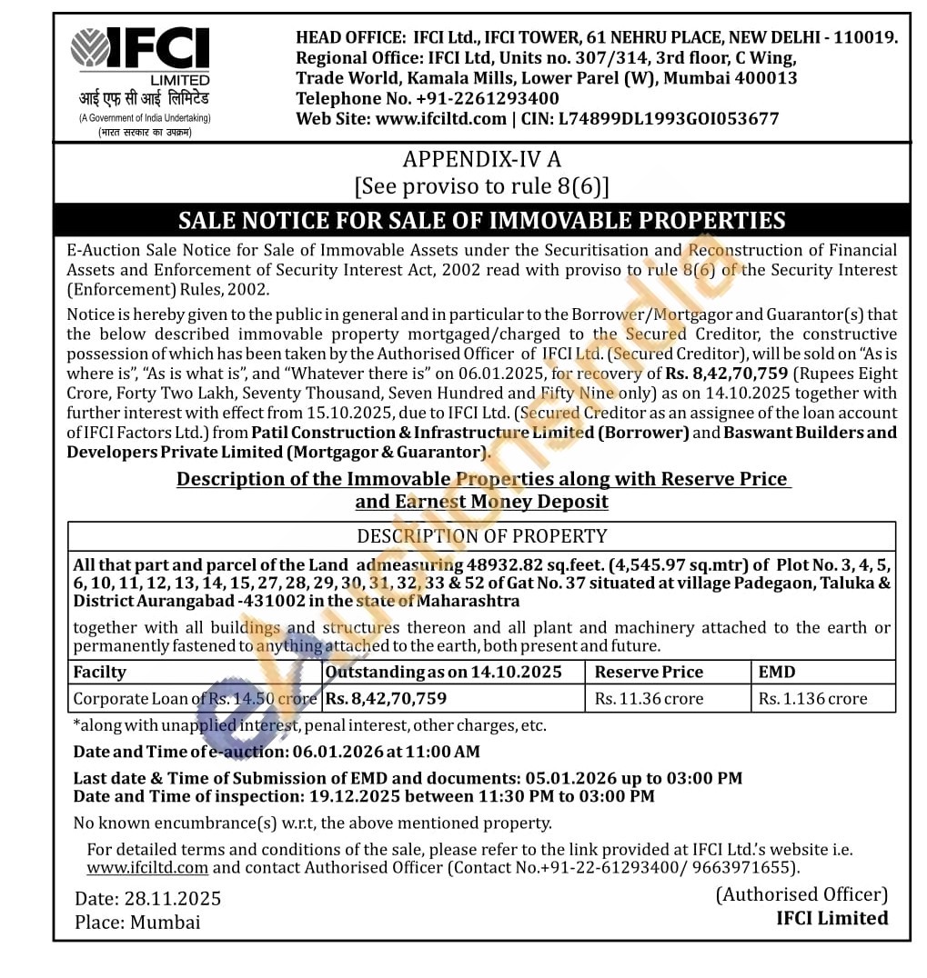 All that part and parcel of the Land admeasuring 48932.82 sq.feet. (4,545.97 sq.mtr) of Plot No. 3, 4, 5, 6, 10, 11, 12, 13, 14, 15, 27, 28, 29, 30, 31, 32, 33 & 52 of Gat No. 37 situated at village Padegaon, Taluka & District Aurangabad-431002 in the state of Maharashtra