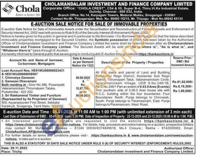 All that piece and parcel of Land and Building Pudukottai Regn District, Keelanilai Sub Regn District, Thirumayam Taluk, Valaramanickam Circle, Valaramanickam Village, UDR S.No.246/18, Re.S.No.246/1 Part an extent of 0.03.0 Ares (8 cents) from southern side of 0.06.0 Ares house site with R.C.C. building within the four boundaries: Four Boundaries: North. Punja belongs to Chinnaiah, South: Punja belongs to Paramasivam, East: Punja belongs to Paramasivam, West: Road