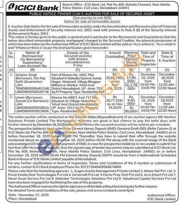 Khasra No 669/1 And 717 Min, Situated at Village Mainather Tehsil And District Moradabad, UP. Area: 1512 Sq Ft. Property Type: Residential Plot