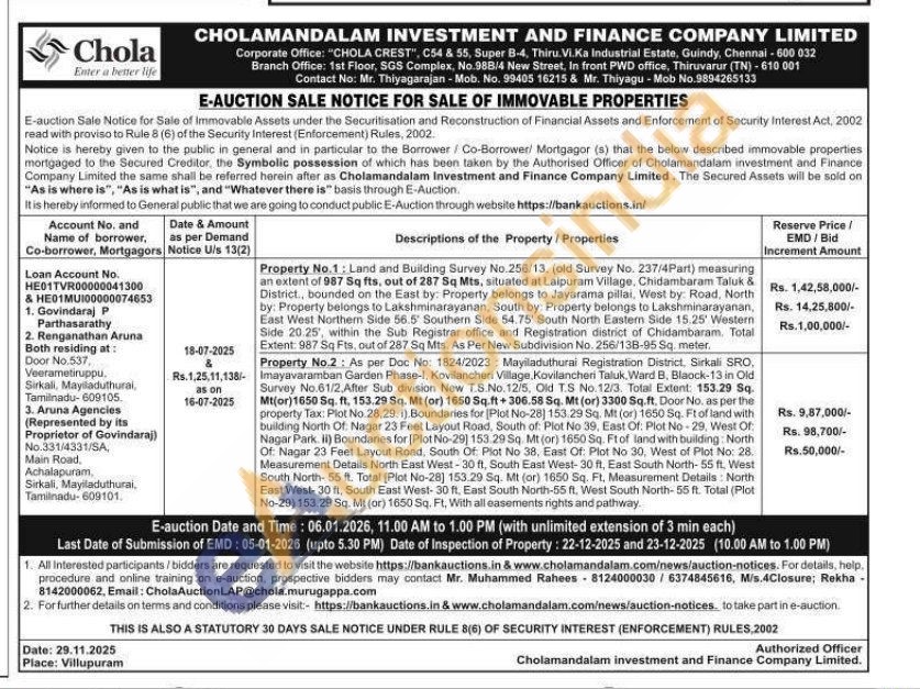 Property No.2: As per Doc No: 1824/2023: Mayiladuthurai Registration District, Sirkali SRO, Imayavaramban Garden Phase-I, Kovillancheri Village, Kovilancheri Taluk, Ward B, Blaock-13 in Old Survey No.61/2.After Sub division New T.S.No. 12/5, Old T.S No. 12/3. Total Extent: 153.29 Sq. Mt(or) 1650 Sq. ft. 153.29 Sq. Mt (or) 1650 Sq.ft+306.58 Sq. Mt (or) 3300 Sq.ft. Door No. as per the property Tax: Plot No. 28,29. i). Boundaries for [Plot No-28] 153.29 Sq. Mt (or) 1650 Sq. Ft of land with building North Of Nagar 23 Feet Layout Road, South of: Plot No 39. East Of: Plot No-29, West Of Nagar Park. II) Boundaries for [Plot No-29] 153.29 Sq. Mt (or) 1650 Sq. Ft of land with building: North Of: Nagar 23 Feet Layout Road, South Of Plot No 38, East Of Plot No 30, West of Plot No: 28. Measurement Details North East West-30 ft, South East West-30 ft, East South North-55 ft. West South North-55 ft. Total [Plot No-28] 153.29 Sq. Mt (or) 1650 Sq. Ft, Measurement Details: North East West-30 ft, South East West-30 ft, East South North-55 ft. West South North-55 ft. Total (Plot No-29) 153.29 Sq. Mt (or) 1650 Sq. Ft, With all easements rights and pathway.