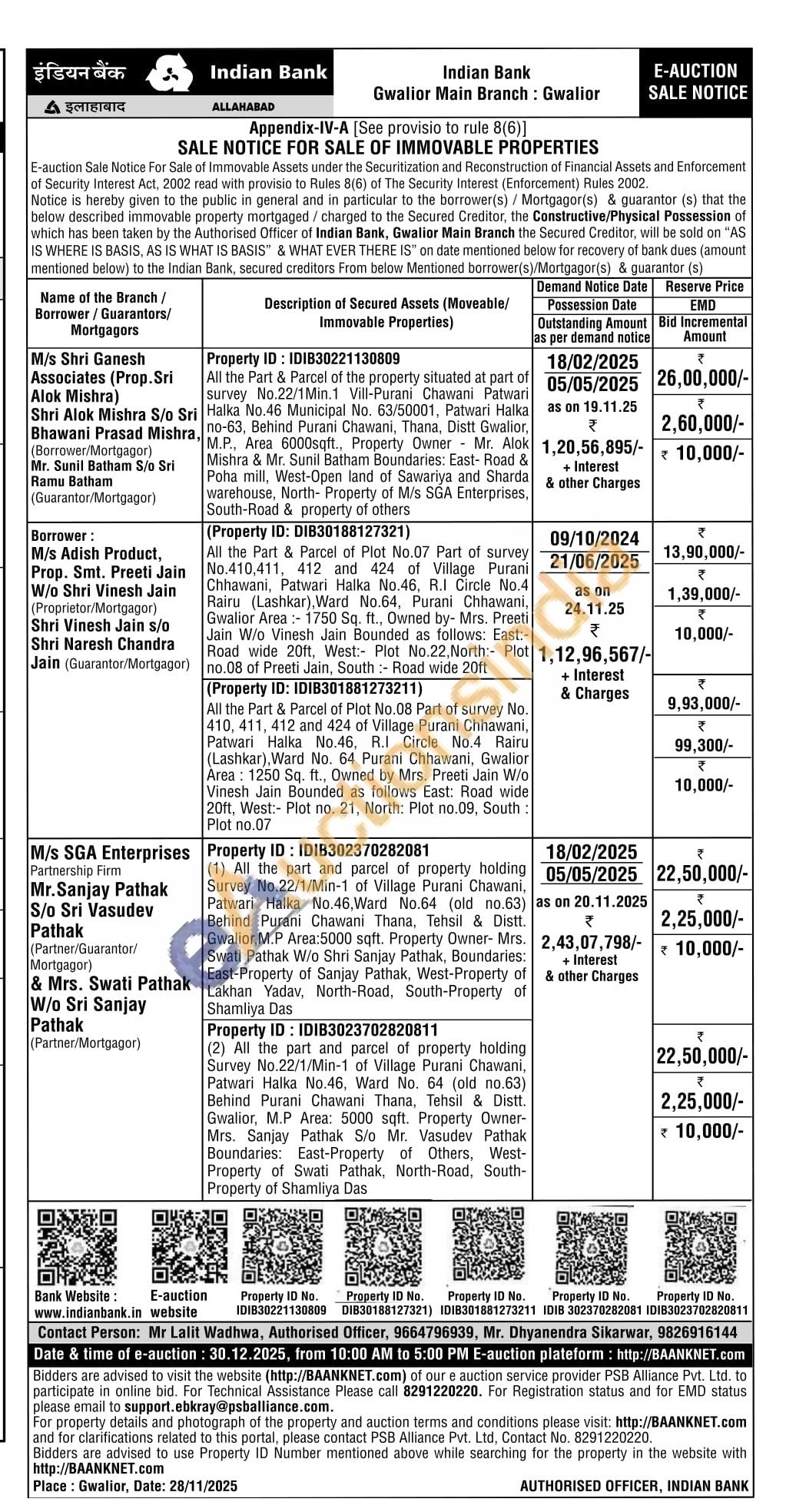 Mr Lalit Wadhwa, Authorised Officer, 9664796939, Mr. Dhyanendra Sikarwar, 9826916144