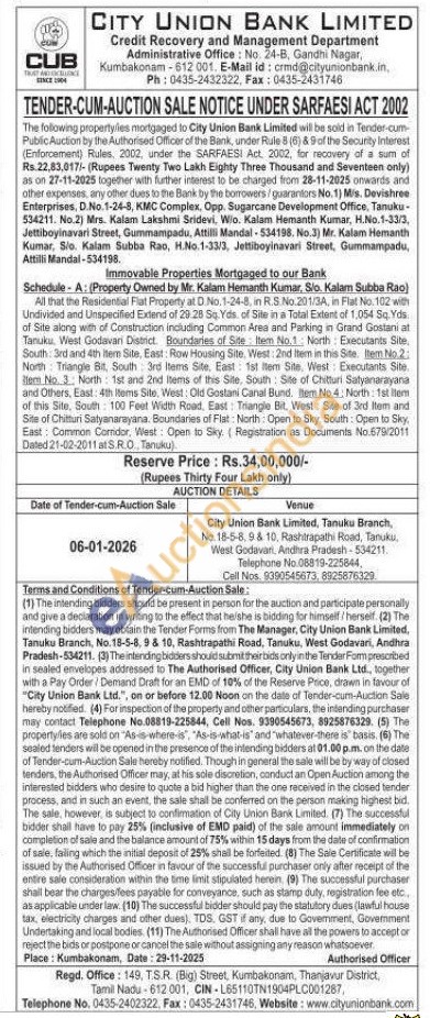 All that the Residential Flat Property at D No.1-24-8. in R.S.No.201/3A, in Flat No. 102 with Undivided and Unspecified Extend of 29.28 Sq. Yds of Site in a Total Extent of 1,054 Sq. Yds of Site along with of Construction including Common Area and Parking in Grand Gostani at Tanuku. West Godavari Distict. Boundaries of Site Item No.1 North Executants Site, South: 3rd and 4th Item Site, East: Row Housing Site, West 2nd Item in this Site Item No.2: North Triangle Bit, South 3rd Items Site, East 1st Item Site. West Executants Site Item No. 3. North 1st and 2nd items of this Site. South Site of Chitturni Satyanarayana and Others, East: 4th Items Site. West: Old Gostani Canal Bund. Item No. 4, North 1st lem of this Site, South 100 Feet Width Road, East Triangle Bit, West: Site of 3rd Item and Side of Chitturi Satyanarayana. Boundaries of Flat North: Open to Sky South: Open to Sky, East: Common Condor, West: Open to Sky (Registration as Documents No.679/2011 Dated 21-02-2011 atS.R.O, Tanuku)