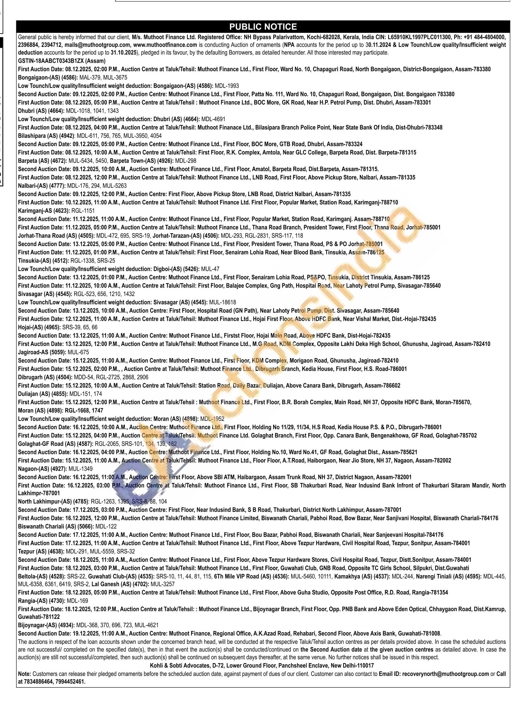 Muthoot Finance Ltd Gold Auctions Auction in Guwahati