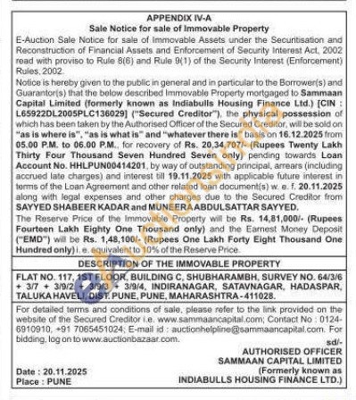 FLAT NO. 117, 1ST FLOOR, BUILDING C, SHUBHARAMBH, SURVEY NO. 64/3/6 + 3/73/9/2 3/9/33/9/4, INDIRANAGAR, SATAVNAGAR, HADASPAR, TALUKA HAVELI, DIST. PUNE, PUNE, MAHARASHTRA-411028