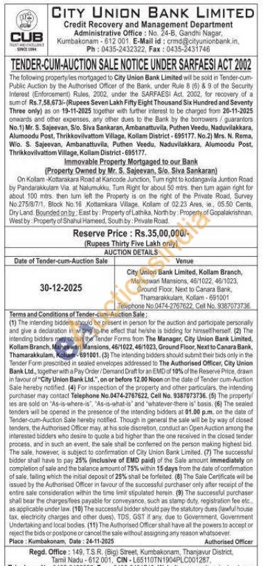 On Kollam -Kottarakara Road at Karicode Junction, Tum right to kodangavila Juntion Road by Pandarakkulam Via at Nalumukku. Tum Right for about 50 mtrs. then tum again right for about 100 mtrs. then turn left the Property is on the right of the Private Road, Survey No.275/8/7/1, Block No. 16 Kottamkara Village, Kollam of 02.23 Ares, ie, 05.50 Cents, Dry Land. Bounded on by East by: Property of Lathika, North by: Property of Gopalakrishnan, West by Property of Shahul Hameed, South by: Private Road.