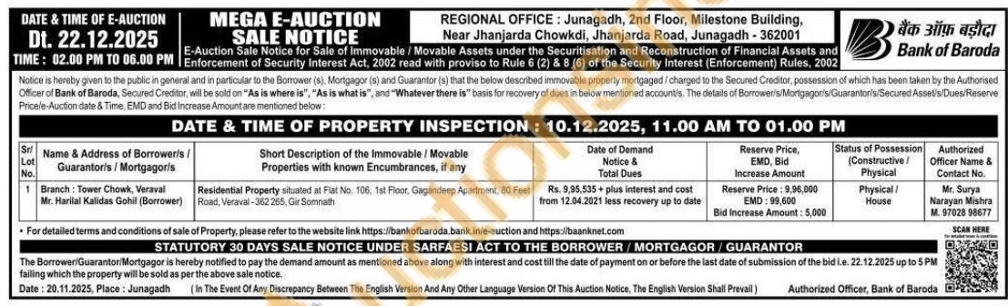 Residential Property situated at Flat No. 106, 1st Floor, Gagandeep Apartment. 80 Feet Road, Veraval-362 265, Gir Somnath