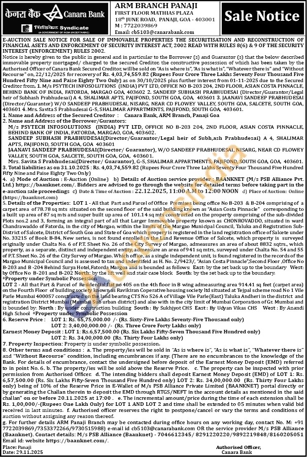 ARM Panaji Branch Mobile no : +91 7722039869 / 7353372266 / 9730515988