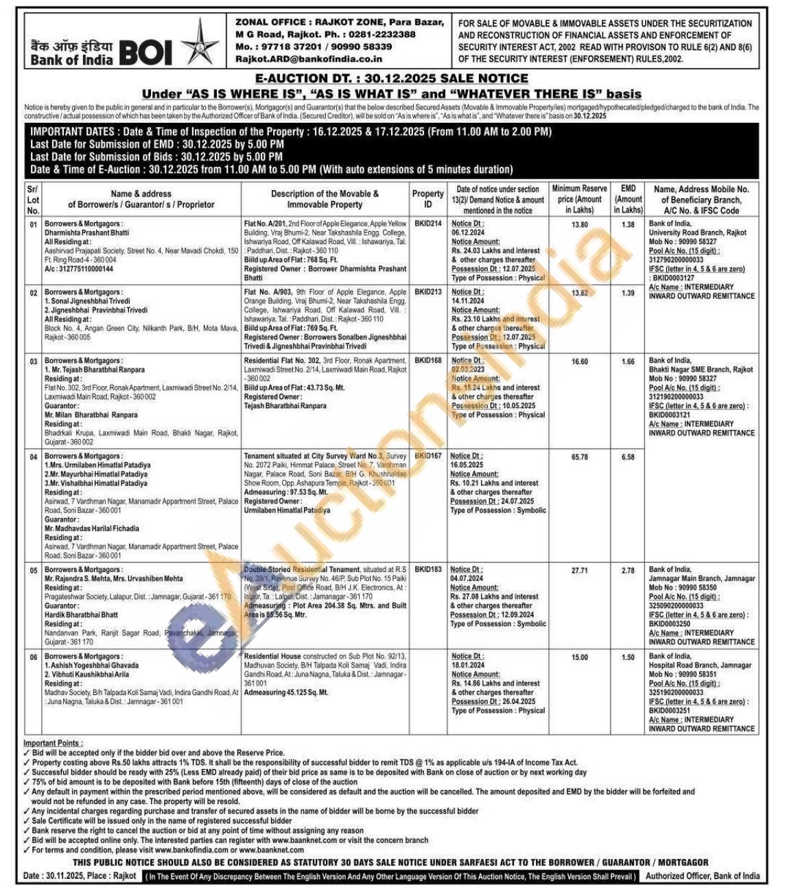 Residential House constructed on Sub Plot No. 92/13, Madhuvan Society, B/H Talpada Koli Samaj Vadi, Indira Gandhi Road, At: Juna Nagna, Taluka & Dist.: Jamnagar- 361001 Admeasuring 45.125 Sq. Mt.
