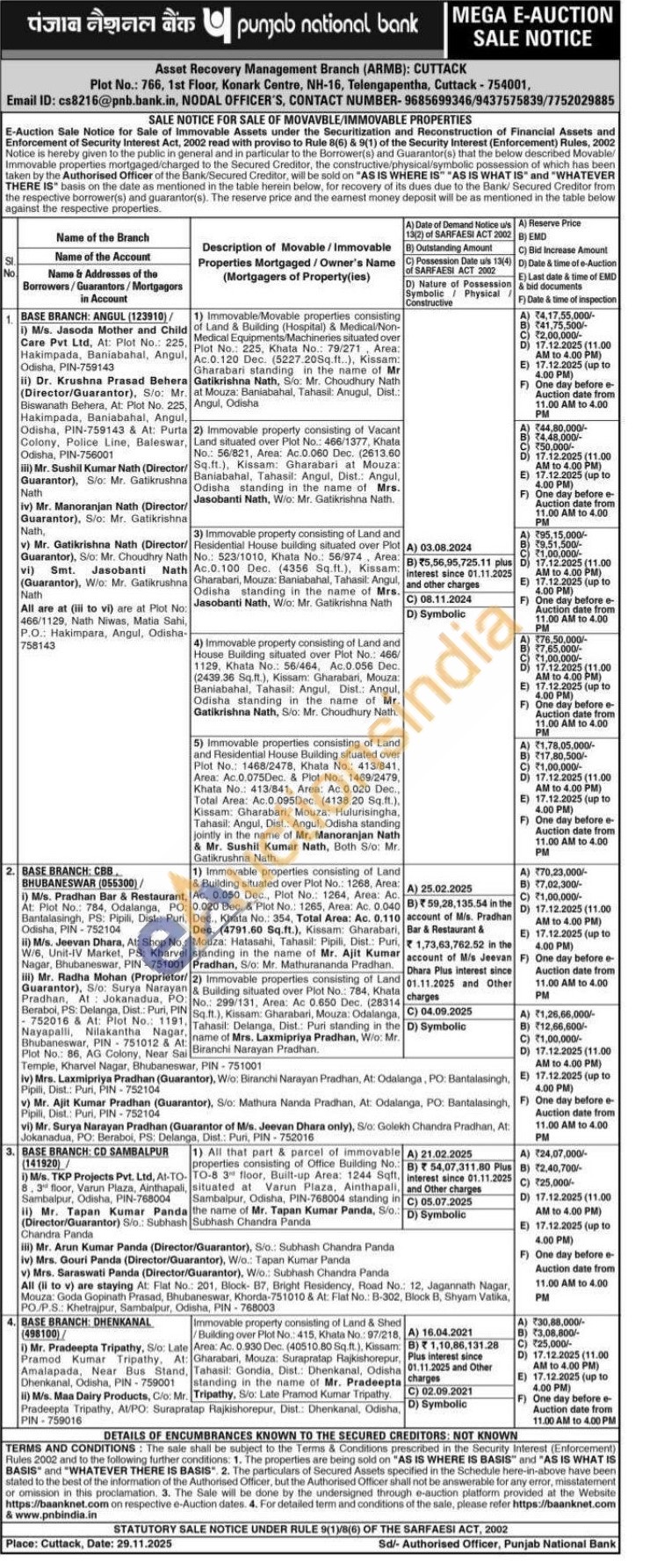 Immovable property consisting of Land & Shed Building over Plot No.: 415, Khata No.: 97/218, Area: Ac. 0.930 Dec. (40510.80 Sq.ft.), Kissam: Gharabari, Mouza: Surapratap Rajkishorepur, Tahasil: Gondia, Dist.: Dhenkanal, Odisha standing in the name of Mr. Pradeepta Tripathy, S/o: Late Pramod Kumar Tripathy.