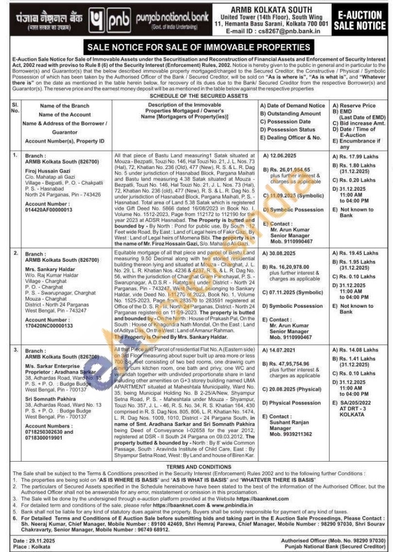 All that piece of Bastu Land measuring1 Satak situated at Mouza-Bezpatli, Touzi No. 146, Hal Touzi No. 21, J. L. Nos. 73 (Hal), 72, Khatian No. 236 (Old), 477 (New), R. S. & L. R. Dag No. 5 under jurisdiction of Hasnabad Block, Pargana Maihati and Bastu land measuring 4.38 Satak situated at Mouza Bezpatli, Touzi No. 146, Hal Touzi No. 21, J. L. Nos. 73 (Hal), 72, Khatian No. 236 (old), 477 (New), R. S. & L. R. Dag No. 5 under jurisdiction of Hasnabad Block, Pargana Maihati, P. S. Hasnabad. Total area of Land 5.38 Satak which is registered vide Gift Deed No. 5866 dated 16/08/2023 in Book No. 1. Volume No. 1512-2023. Page from 112172 to 112190 for the year 2023 at ADSR Hasnabad. The Property is butted and bounded by By North Pond for public use, By South: 12 Feet wide Road, By East: Land of Legal heirs of Fakir Gazi, By West: Land of Legal heirs of Momena Bibi. The property is in the name of Mr. Firoz Hossain Gazi, Sio. Mahatap Ali Gazi.