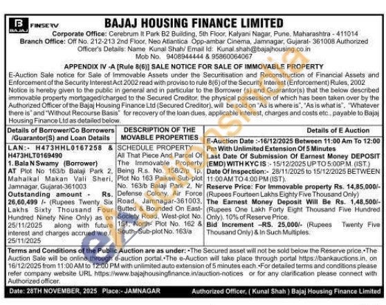 All That Piece And Parcel Of The Immovable Property Being Rs. No. 158/2/p 1p. Plot No 163 Paikee Sub-plot No. 163/b Balaji Park 2. Nr Rs. Defense Colony Air Force Road, Jamnagar-361003. Butted & Bounded On East Society Road. West-plot No. 151, North Plot No. 162 & South-Sub-plot No. 163/a