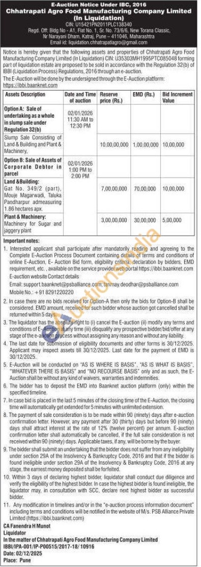 Slump Sale Consisting of Land & Building and Plant & Machinery,