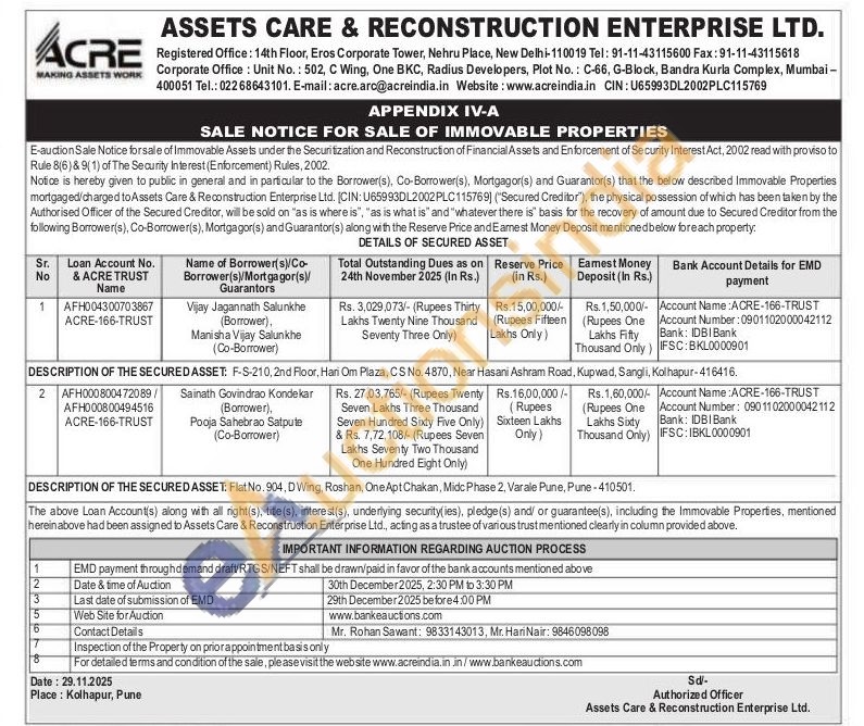 Flat No. 904, D Wing, Roshan, OneApt Chakan, Midc Phase 2, Varale Pune, Pune-410501.