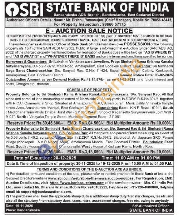 Contact Authorised Officer's Details: Name: Mr. Bishnu Ramanujan (Chief Manager), Mobile No. 70056 48443